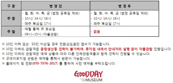 제목 : [공지] 굿데이뮤지엄 주말운영 종료 안내