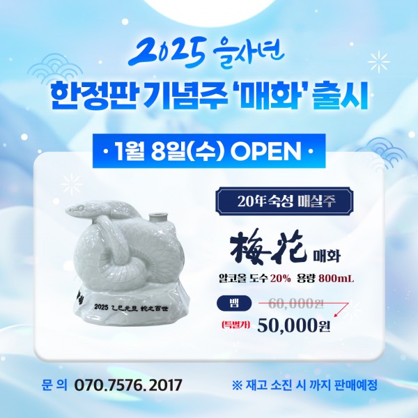 제목 : [공지] 2025 을사년 한정판 기념주 "뱀" 매화출시