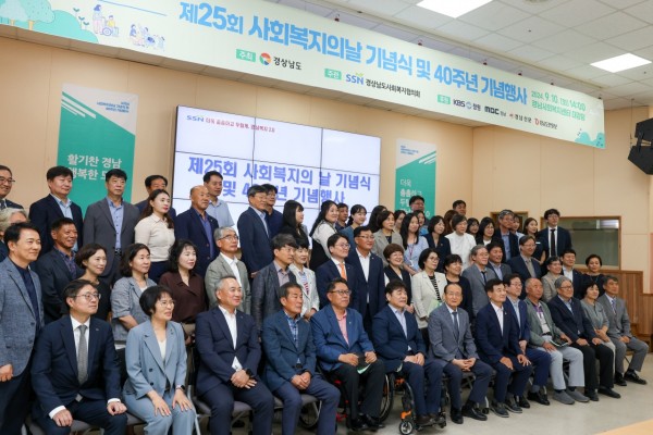 경상남도(도지사 박완수)가 주최하고 경상남도사회복지협의회(회장 박성욱)가 주관한 「제25회 사회복지의 날 기념식 및 40주년 기념행사」가 9월 10일(화) 14시 경남사회복지센터 대강당에서 열렸다. 이번 행사는 ‘사회복지의 날’(9월 7일)을 맞아 도민의 복지에 대한 이해를 높이고 참여를 확대하기 위해‘더욱 촘촘하고 두텁게, 경남복지 2.0’이라는 주제로 진행했다.