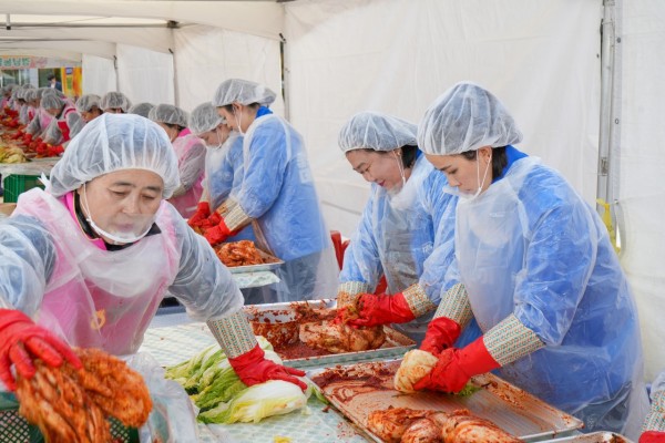 [창원=뉴시스]홍정명 기자 = 경남 창원에 본사를 둔 무학은 14일 창원시 창원컨벤션센터 앞 광장에서 열린 '사랑의 김장김치 나눔행사'에 동참하고 후원금 800만원도 전달했다고 밝혔다.