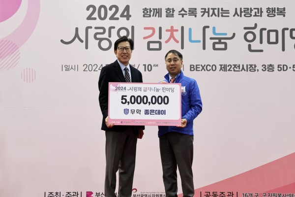 무학이 부산시와 부산시자원봉사센터가 주관한 '2024 사랑의 김치나눔 한마당'에 참여해 김치를 담그고 후원금을 전달했다고 28일 밝혔다.